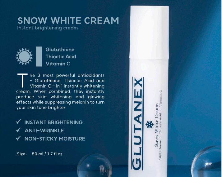 A brightening cream formulated with glutathione, thioctic acid, and vitamin C to help suppress melanin formation while keeping skin hydrated and luminous.