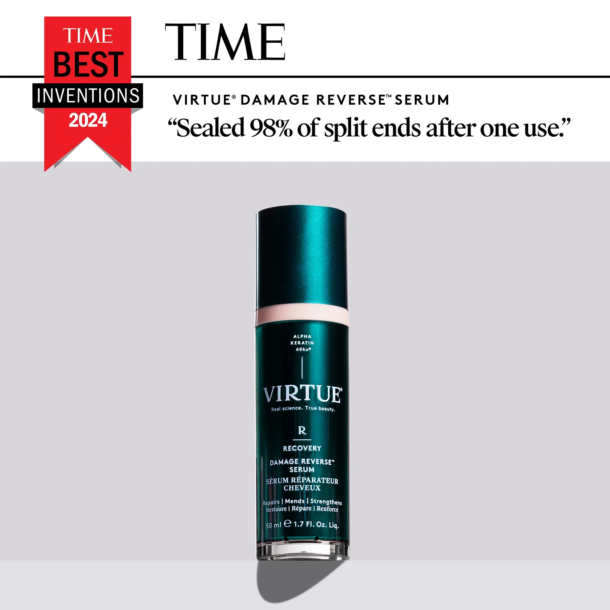 Virtue® is best known for its patented Alpha Keratin 60ku®, a bio-identical keratin discovered through regenerative medicine research. This breakthrough allows Virtue® products to repair and strengthen hair from the inside out, not just coat it.